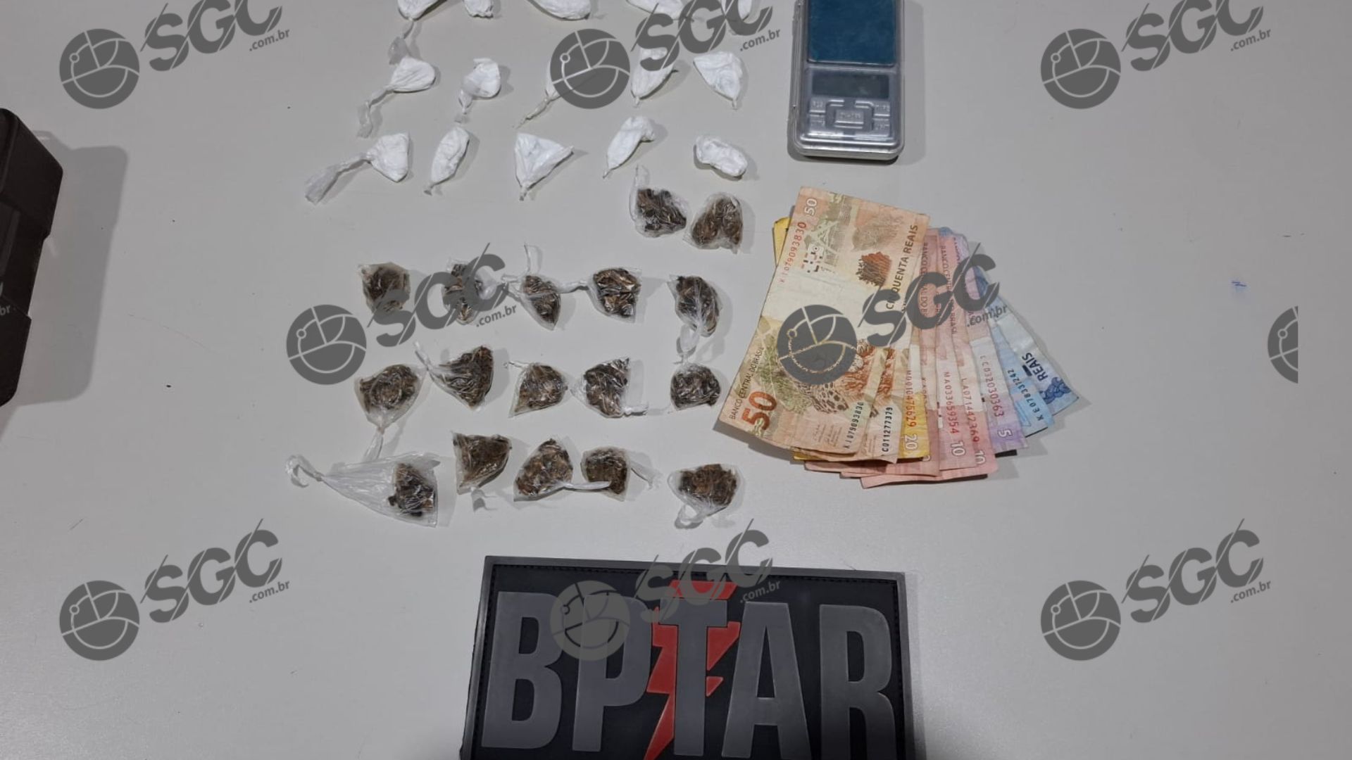 Durante a abordagem realizada pela Polícia Militar, foram encontrados com eles porções de maconha e cocaína, além de uma balança de precisão e dinheiro, materiais que indicam a prática de comércio ilegal de entorpecentes.