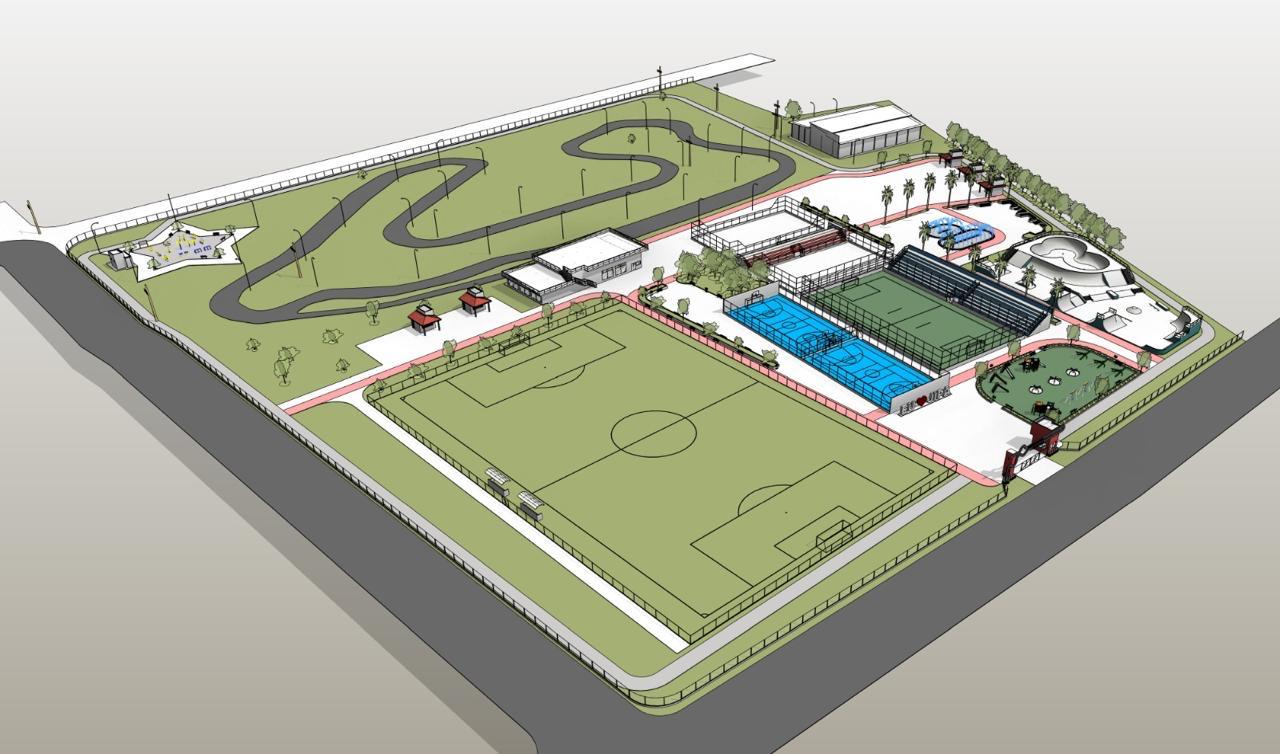 O complexo representa um dos maiores investimentos recentes na infraestrutura esportiva e de lazer do município. O projeto contempla pista de kart, praça, campo de futebol com arquibancada e vestiários, duas quadras de areia com arquibancada, garagem para karts, duas quadras poliesportivas, pista de skate, parquinho infantil, guarita com portal de entrada, duas áreas para food trucks, fonte interativa, academia ao ar livre e pista de caminhada em todo o entorno.